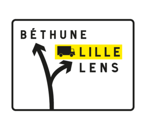AK2 : cassis dos d’âne (signalisation temporaire) – AK3 : chaussée rétrécie (signalisation temporaire) – AK4 : chaussée glissante (signalisation temporaire) – AK5 : travaux (signalisation temporaire) – AK14 : autres dangers (signalisation temporaire) – AK17 : annonce de signaux lumineux (signalisation temporaire) – AK22 : projection de gravillons (signalisation temporaire) K5a : cône de chantier – K5b : piquet de chantier – K5c : balise de chantier – K5d : balises articulées – K8 : signalisation de position de déviation ou rétrécissement de voie – K10 : piquets mobiles – K21 : signalisation de direction temporaire – KD21b : signalisation de direction temporaire pour les camions – KD22a : déviation – KD22b : déviation pour les camions – KD43c : pré-signalisation de déviation de direction – KD43d : pré-signalisation de déviation de direction pour les camions – KD44a : pré-signalisation de déviation temporaire pour accèder à la ville KD44b : pré-signalisation de déviation temporaire pour accèder à la ville uniquement pour les camions – KD44b + KD73 : feux de balisage et d’alerte de changement de direction – KD62 : signalisation de déviation de sortie – KD73 : fin de déviation – KD81: changement de chaussée – KD82 : changement de chaussée – KD83 : changement de chaussée – KD84 : changement de chaussée – KD91 : affectation de voies – KD92 : affectation de voies – KD93 : affectation de voies – KD10 : réduction de nombre de voies – J11 : balise auto-relevable – J12 : balise auto-relevable